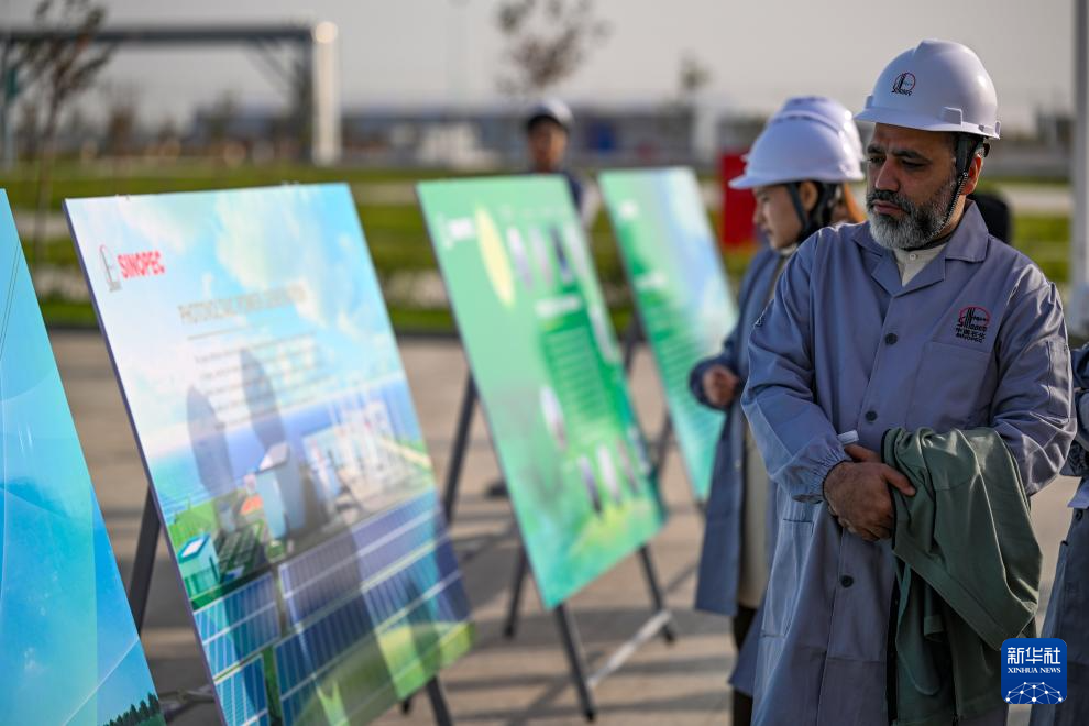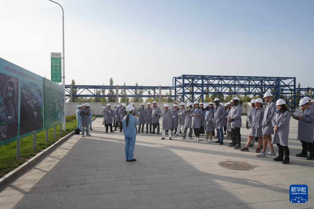 10月16日,嘉賓在中國石化新疆庫車綠氫示範項目參觀。新華社記者 劉夢琪 攝