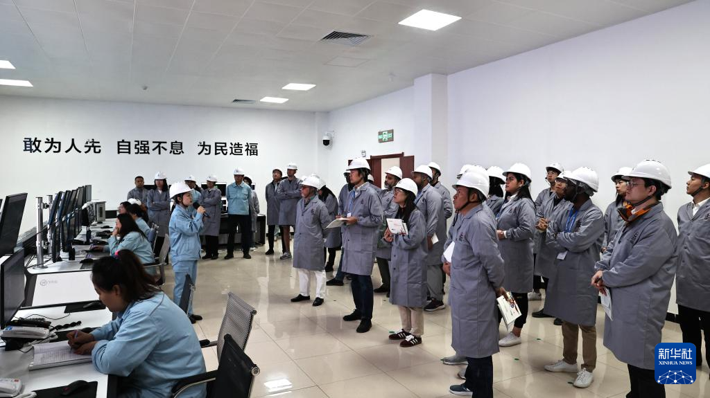 10月16日,嘉賓在中國石化新疆庫車綠氫示範項目中心控製室參觀。新華社發(陳星宇 攝)