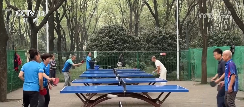 打乒乓球的人多了,原來的乒乓球桌就不夠用,當地政府又增加了許多來滿足大家的需求。
