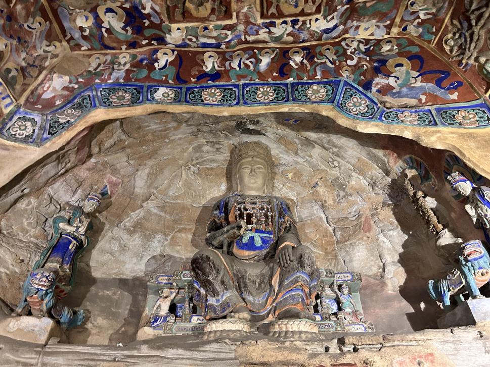 走進一眼眼洞窟中時,僅(jin) 用眼睛欣賞已經不滿足,外籍友人們(men) 頻頻用手機鏡頭拍攝影像,仿佛要將精美的造像全部記錄下以便慢慢回味。
