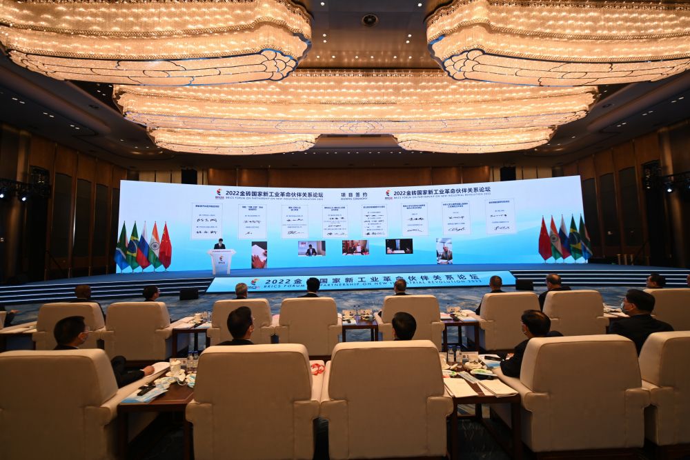這是2022年9月7日拍攝的金磚國家新工業(ye) 革命夥(huo) 伴關(guan) 係創新基地項目簽約儀(yi) 式現場。新華社記者林善傳(chuan) 攝