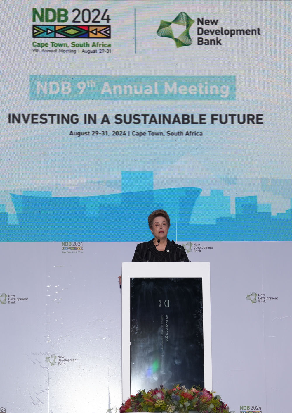 8月30日,在南非開普敦,新開發銀行行長羅塞芙在該行第九屆理事會(hui) 年會(hui) 開幕式上致辭。新華社記者王雷攝