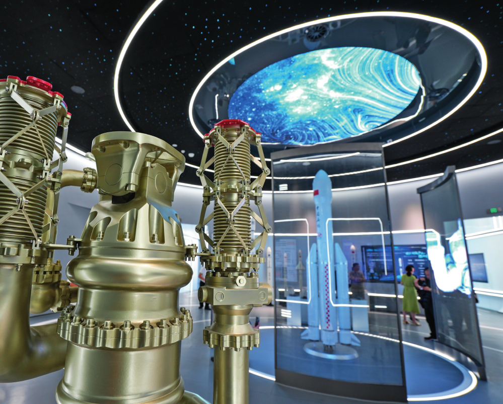 在無錫商業(ye) 航天展示館拍攝的火箭發動機模型(2024 年 9 月 9 日攝) 楊磊攝 / 本刊