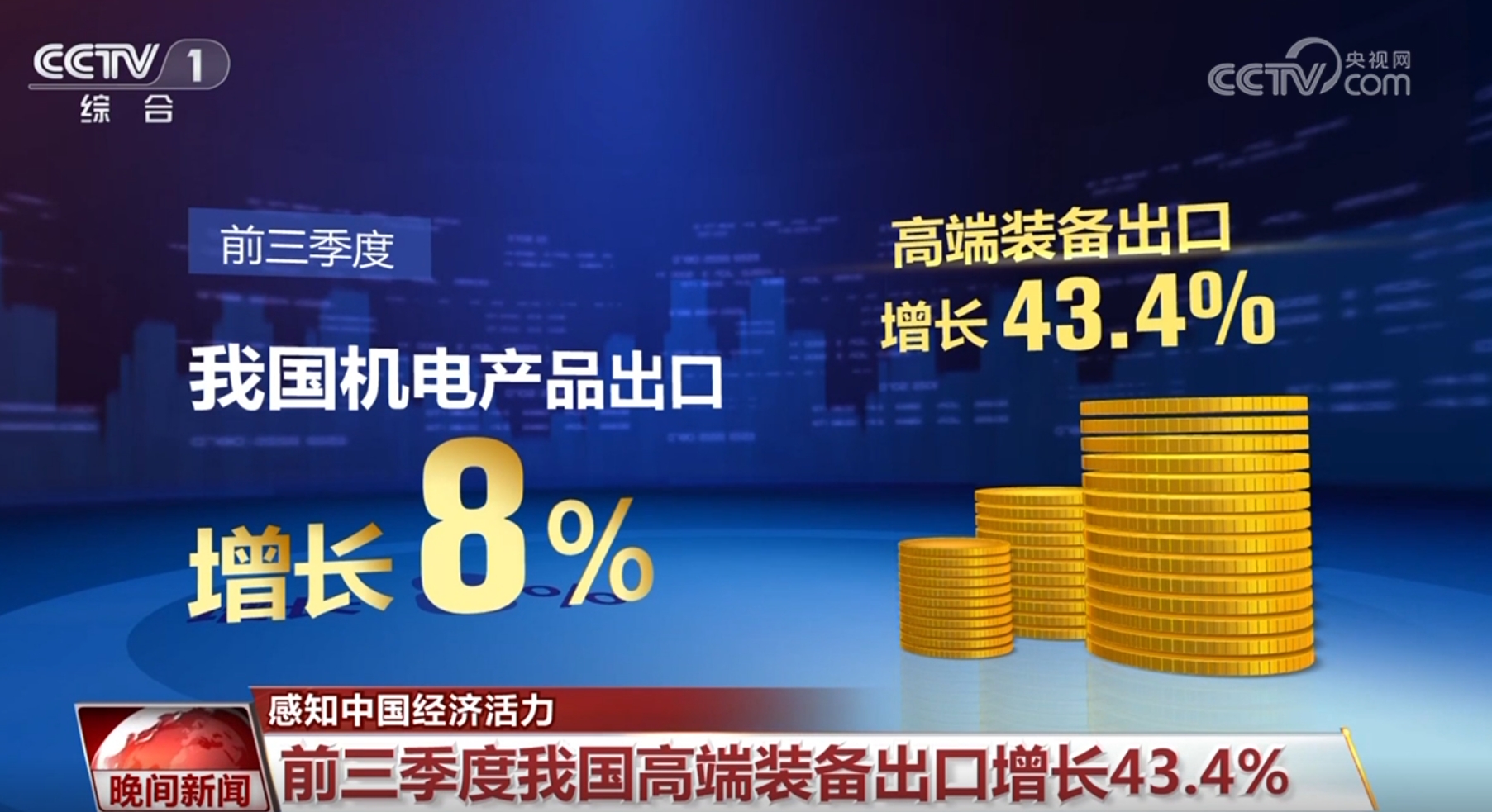 此外,創新也讓中國製造更受青睞。前三季度,我國機電產(chan) 品出口增長8%,占出口總值的59.3%。其中,高端裝備出口增長43.4%,集成電路、船舶、通用機械等高技術、高附加值產(chan) 品出口實現兩(liang) 位數增長,外貿結構持續優(you) 化。