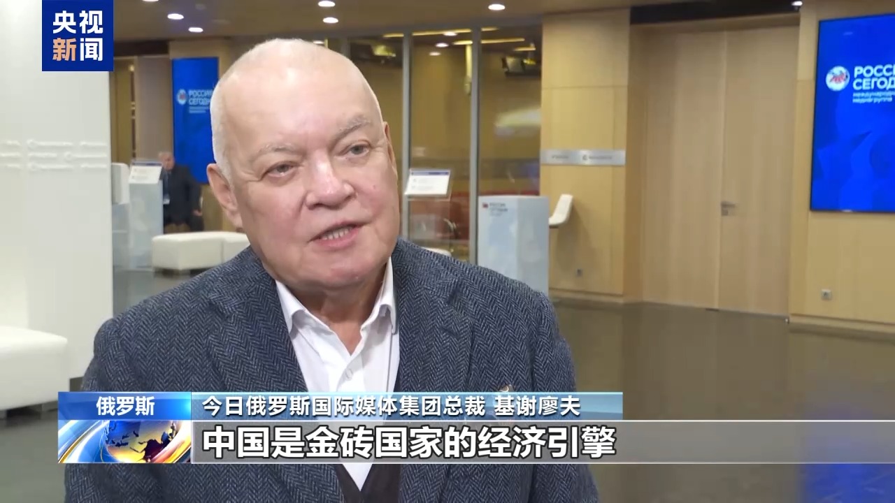 今日俄羅斯國際媒體(ti) 集團總裁 基謝廖夫:中國是金磚國家的經濟引擎,其他國家也作出了應有的貢獻,我也非常希望金磚國家繼續加強人文合作。