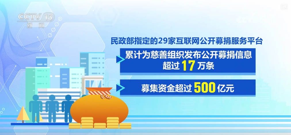 目前,全國共登記認定慈善組織超過1.5萬(wan) 家,是五年前的三倍;全國累計備案慈善信托2062單,是五年前的十五倍。年度捐贈總額最高突破2000億(yi) 元,民政部指定的29家互聯網公開募捐服務平台累計為(wei) 慈善組織發布公開募捐信息超過17萬(wan) 條,募集資金超過500億(yi) 元。