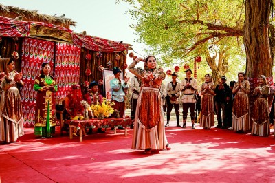 尉犁縣羅布人村寨傳(chuan) 統婚禮表演。豐(feng) 盼攝