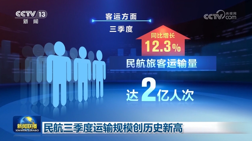 記者從(cong) 中國民航局了解到,今年三季度民航全行業(ye) 共完成運輸總周轉量403.5億(yi) 噸公裏,同比增長19.8%。客貨運規模創曆史新高。
