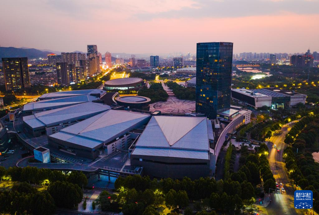 鳥瞰暮色下的義(yi) 烏(wu) (無人機照片,10月9日攝)。新華社記者 翁忻暘 攝