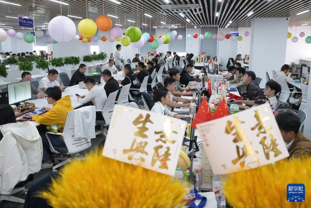 Chinagoods AI智創服務平台的技術人員在討論一款新產(chan) 品的設計(5月17日攝)。新華社發