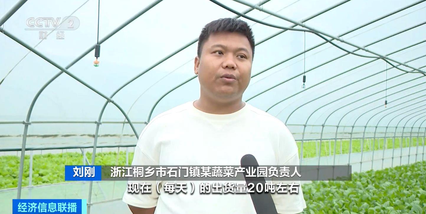 浙江桐鄉(xiang) 市石門鎮某蔬菜產(chan) 業(ye) 園負責人 劉剛:現在每天的出貨量20噸左右,後期出貨量每天可以達到50噸至60噸。
