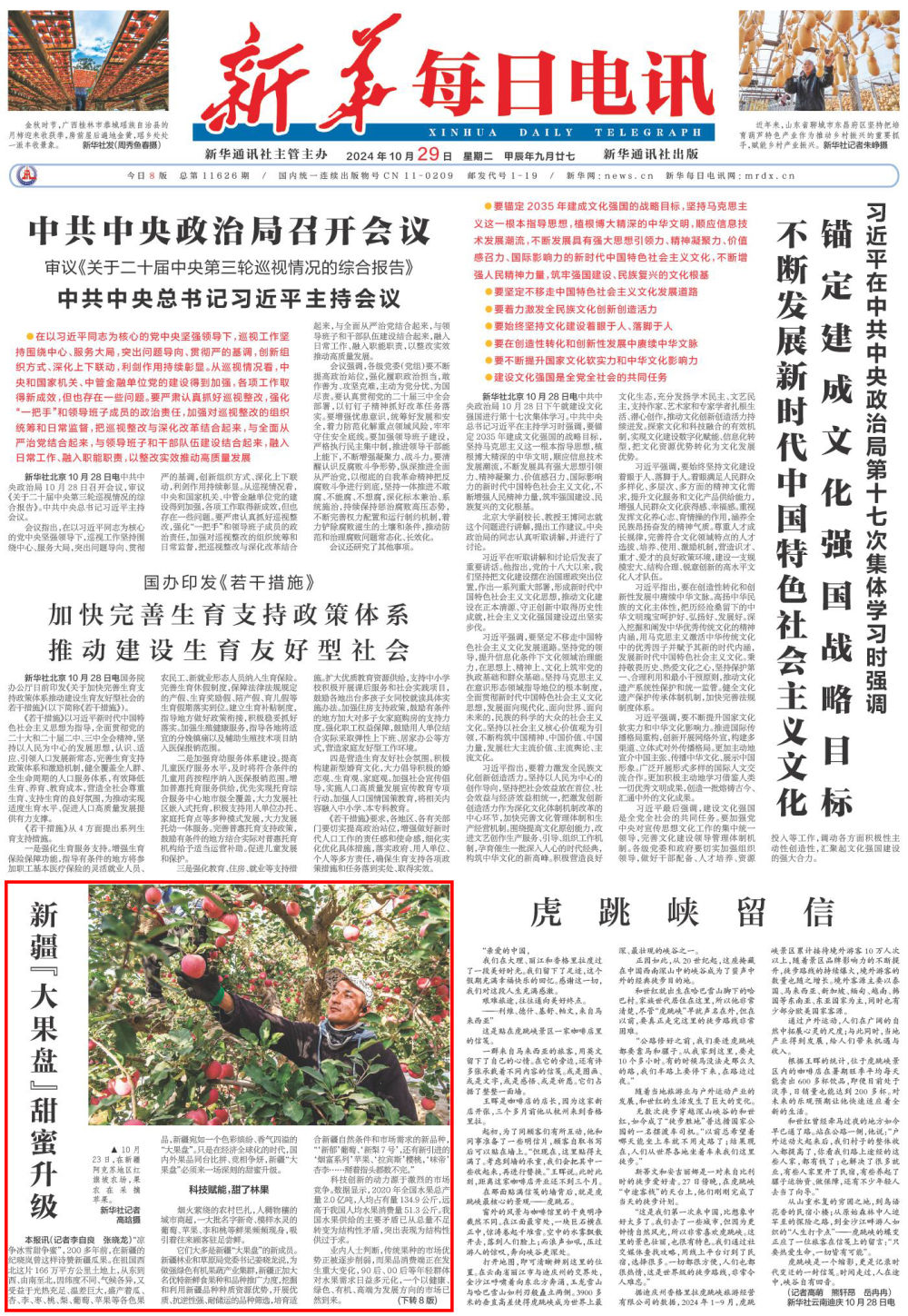 它們(men) 大多是新疆“大果盤”的新成員。新疆林業(ye) 和草原局黨(dang) 委書(shu) 記薑曉龍說,為(wei) 做強綠色有機果蔬產(chan) 業(ye) 集群,新疆正加大名優(you) 特新鮮食果種和品種推廣力度,挖掘和利用新疆品種種質資源優(you) 勢,開展優(you) 質、抗逆性強、耐儲(chu) 運的品種篩選,培育適合新疆自然條件和市場需求的新品種,“‘新鬱’葡萄、‘新梨7號’,還有新引進的‘煙富係列’蘋果、‘拉賓斯’櫻桃,‘味帝’杏李……掰著指頭都數不完。”