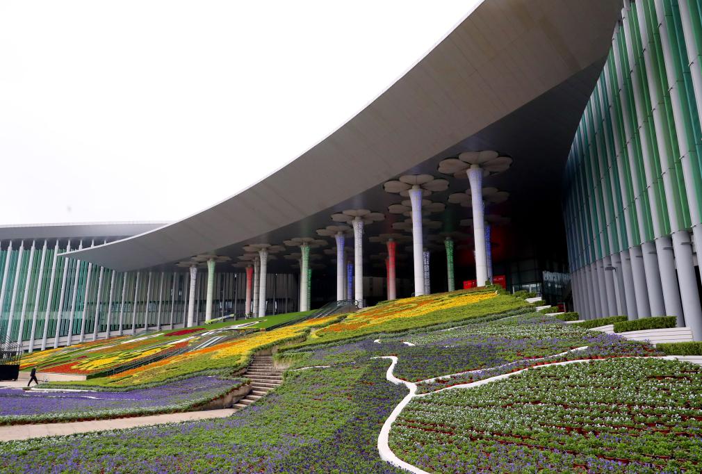 這是10月22日拍攝的國家會(hui) 展中心(上海)南廣場花壇裝飾。新華社記者方喆 攝