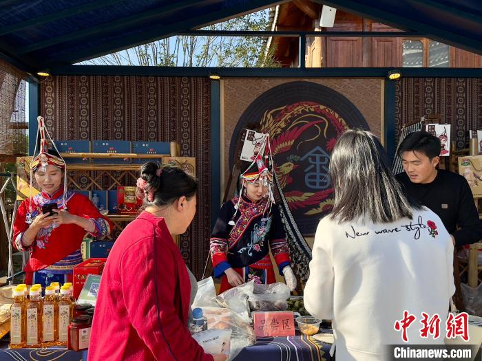 圖為(wei) 黃予心(中)在江西吉安金坪民族鄉(xiang) 八寨集市售賣佘族特產(chan) 。中新網記者劉子衿 攝