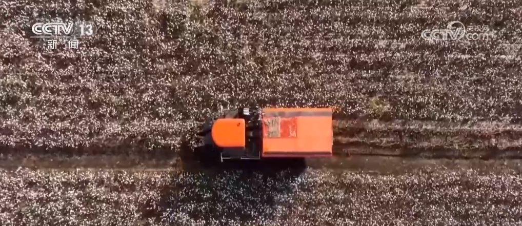 在無棣縣西小王鎮的棉田裏,采棉機械正將棉花從(cong) 棉稈上脫離,並通過氣流將棉花推送至儲(chu) 存車廂。每台采棉機械一天的作業(ye) 量是過去800個(ge) 工人一天的勞動成果,成本也從(cong) 人工采摘每畝(mu) 720元,降到了機械化采摘的每畝(mu) 120元。