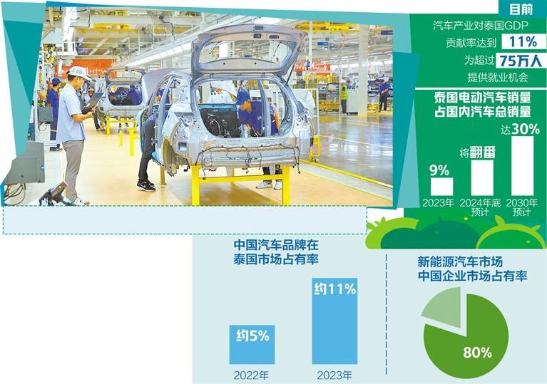 政府的一係列舉(ju) 措使得越來越多的泰國民眾(zhong) 開始將電動汽車作為(wei) 重要選擇。2023年,泰國電動汽車的銷量占國內(nei) 汽車總銷量的9%,預計到2024年底,這一數字將翻番。今年前5個(ge) 月,泰國全國電動汽車的新注冊(ce) 量比去年同期增長了31.64%,已成為(wei) 泰國汽車業(ye) 疲軟背景下反向增長的亮點。在曼穀工作的年輕人艾拉弗稱,他正在考慮將現有的燃油車更換為(wei) 新能源汽車,以減少每月高達4000泰銖至5000泰銖的油費。多家在泰中國車企表示,泰國消費者在更換電動汽車時,首先關(guan) 注的是價(jia) 格和實用性。而中國車企的產(chan) 品因其現代化的外觀、方便的操作係統和有競爭(zheng) 優(you) 勢的價(jia) 格,越來越受到泰國消費者的青睞。