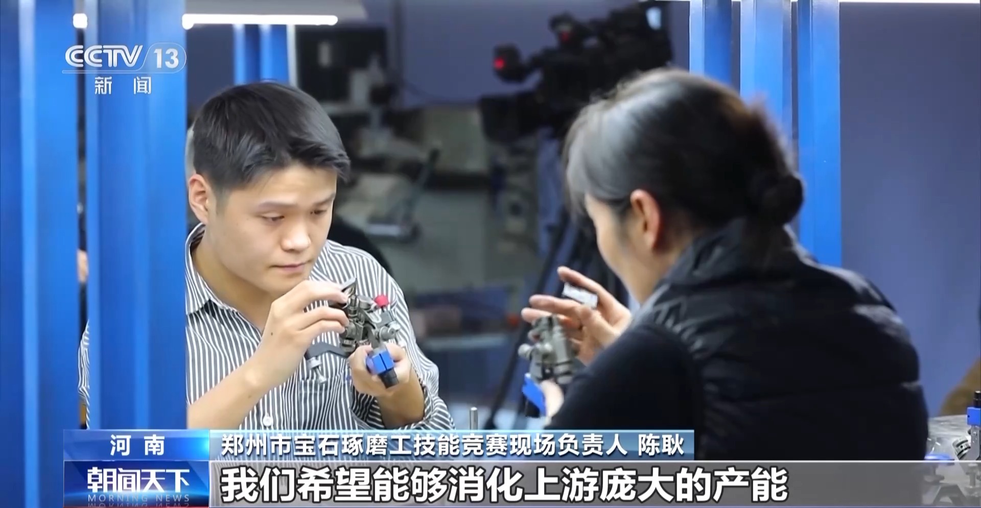 鄭州市寶石琢磨工技能競賽現場負責人陳耿告訴記者,通過這個(ge) 比賽,一方麵為(wei) 了培養(yang) 產(chan) 業(ye) 工匠、產(chan) 業(ye) 大師;另外一方麵,希望能夠消化上遊龐大的產(chan) 能。