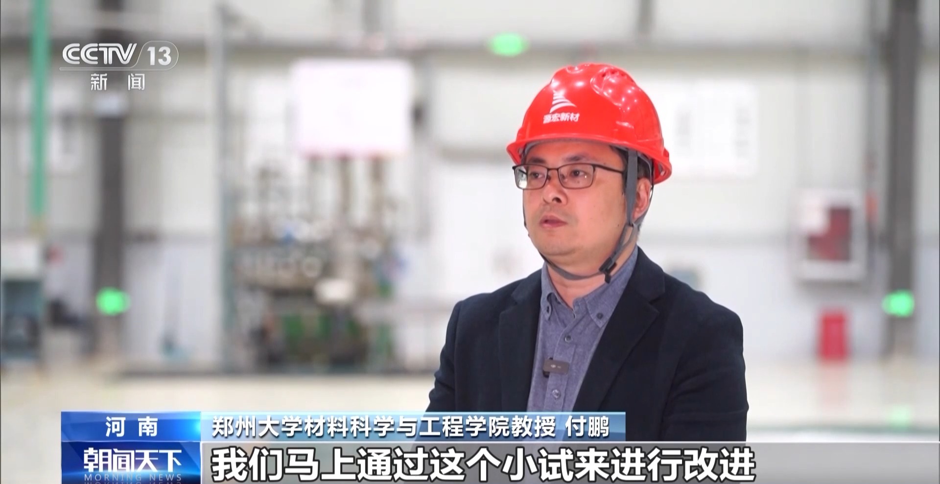 鄭州大學材料科學與(yu) 工程學院教授 付鵬:一旦產(chan) 品上出現了問題,我們(men) 馬上通過小試來進行改進,進而通過中試和產(chan) 業(ye) 化,進行技術迭代,並沒有把這個(ge) 問題直接丟(diu) 給這個(ge) 企業(ye) ,而是我們(men) 全程都跟企業(ye) 在一起。