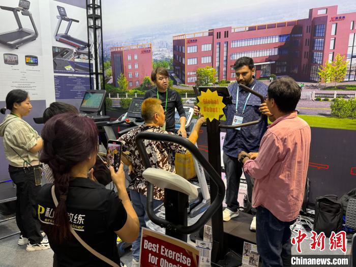 11月2日,廣交會(hui) 境外采購商在體(ti) 驗新款體(ti) 育類產(chan) 品。記者 蔡敏婕 攝
