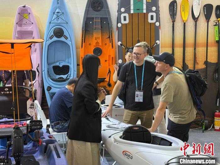 福建渡遠戶外運動用品有限公司的座艙式皮劃艇、“梭子魚”皮劃艇等產(chan) 品吸引了本屆廣交會(hui) 東(dong) 南亞(ya) 、歐洲、中東(dong) 等地區采購商關(guan) 注。“這款船長3.2米,具有多種功能和配件,它在水裏可以像魚一樣快速滑行。”該公司區域經理陳潞斌介紹,境外采購商對產(chan) 品的外觀設計和功能特別感興(xing) 趣,得益於(yu) 穩定的客戶基礎,該公司今年前三季度的訂單表現與(yu) 去年持平,公司已經投入更多設備並開發新產(chan) 品。