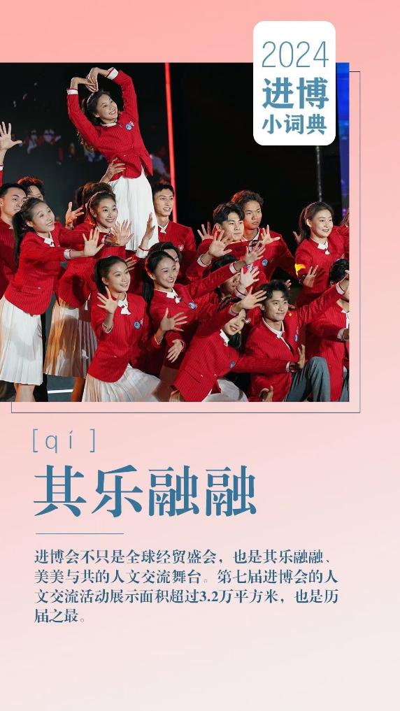 進博會(hui) 不隻是全球經貿盛會(hui) ,也是其樂(le) 融融、美美與(yu) 共的人文交流舞台。第七屆進博會(hui) 的人文交流活動展示麵積超過3.2萬(wan) 平方米,也是曆屆之最。