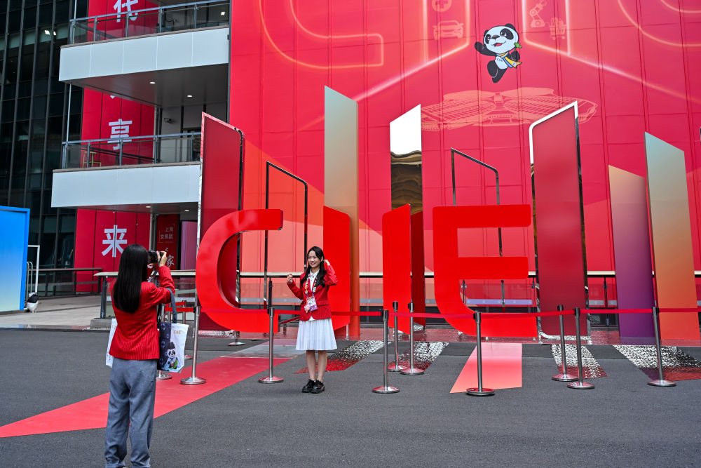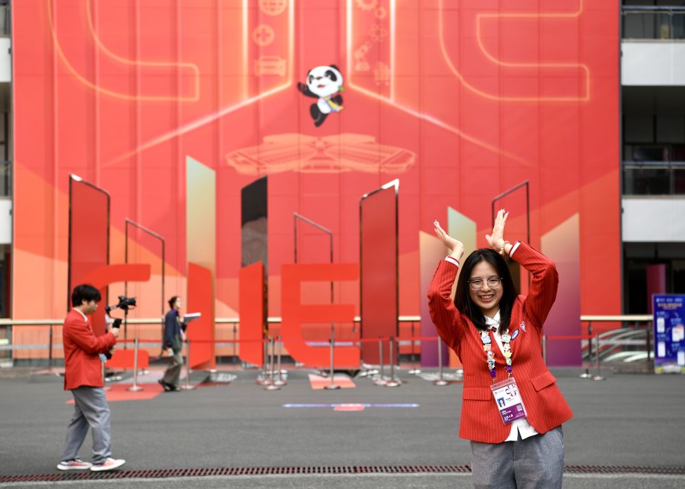 11月4日,誌願者在第七屆中國國際進口博覽會(hui) 舉(ju) 辦場地——國家會(hui) 展中心(上海)留影。
