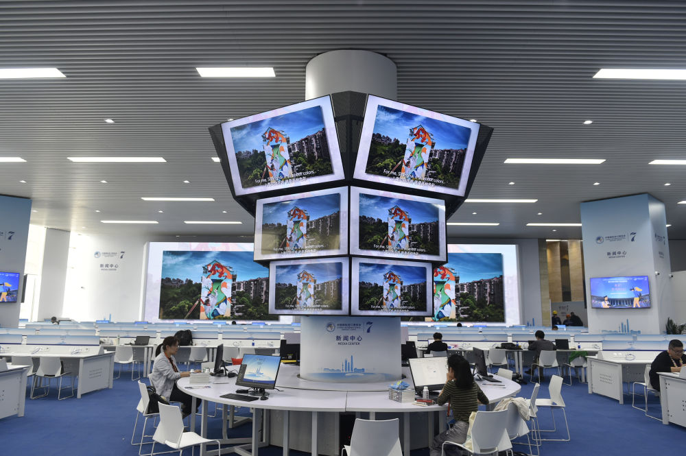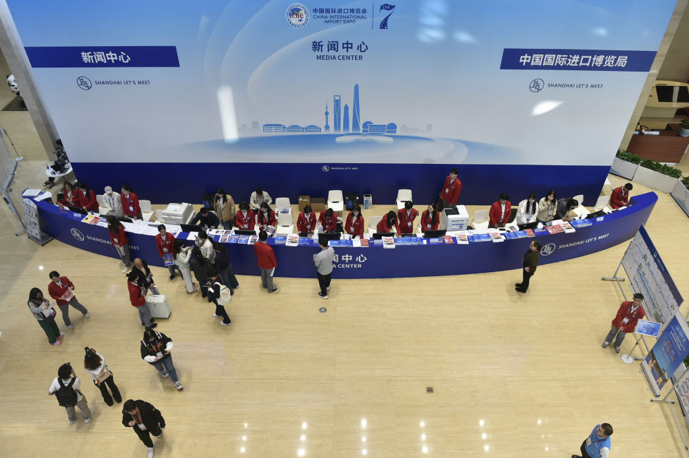 這是11月4日拍攝的第七屆進博會(hui) 新聞中心。
