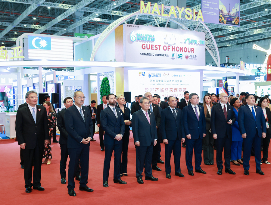 11月5日,國務院總理李強在上海出席第七屆中國國際進口博覽會(hui) 暨虹橋國際經濟論壇開幕式,並發表主旨演講。這是開幕式後,李強同與(yu) 會(hui) 外國領導人共同巡館。新華社記者 王曄 攝