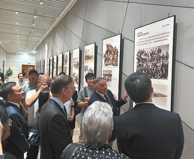中美嘉賓在湖南長沙博物館參觀飛虎隊主題曆史圖片展。