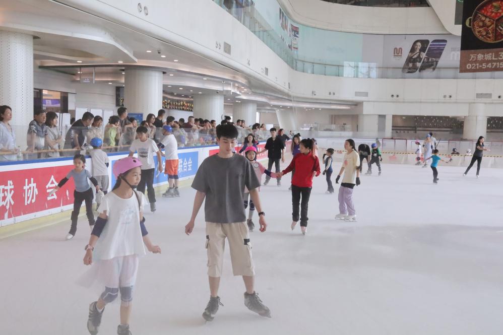 今年7月26日,人們(men) 在華潤上海萬(wan) 象城冰場參加滑冰等冰上活動。(嶽遠 攝)