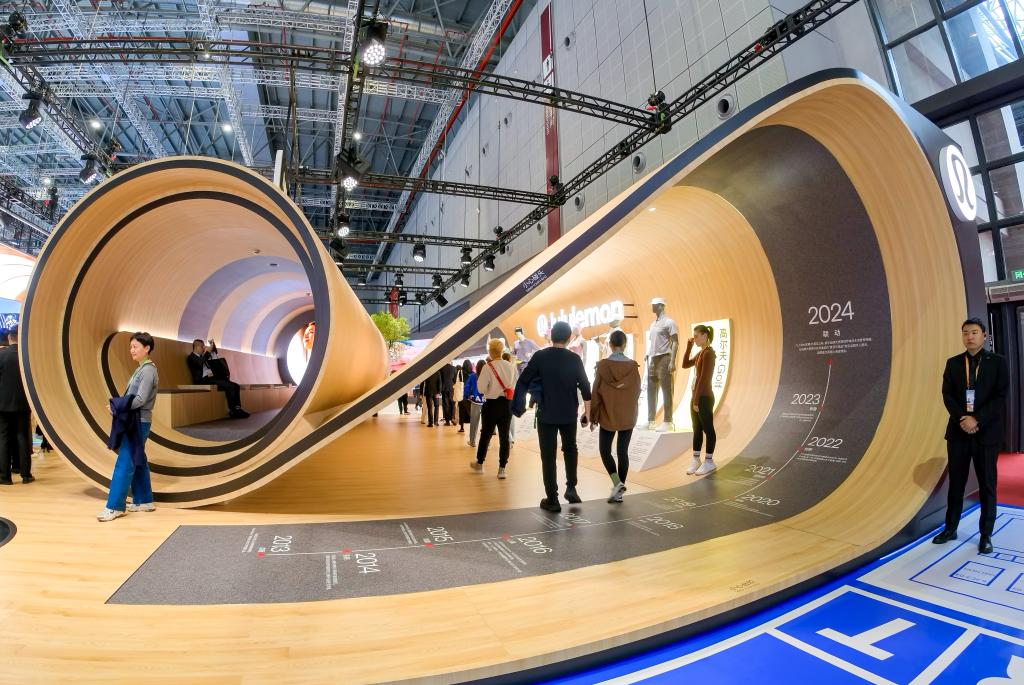 11月7日,觀眾(zhong) 在進博會(hui) 消費品展區露露樂(le) 蒙展位參觀。新華社記者 張铖 攝