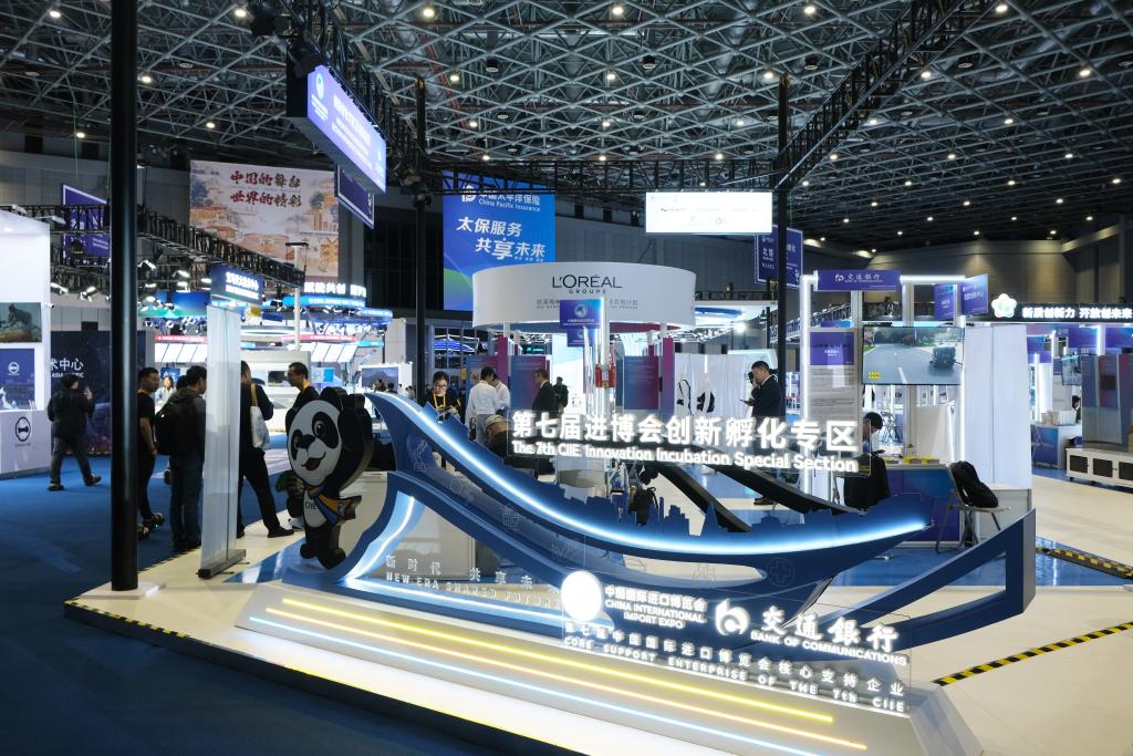 這是11月5日拍攝的第七屆進博會(hui) 創新孵化專(zhuan) 區現場。新華社發(周心怡攝)