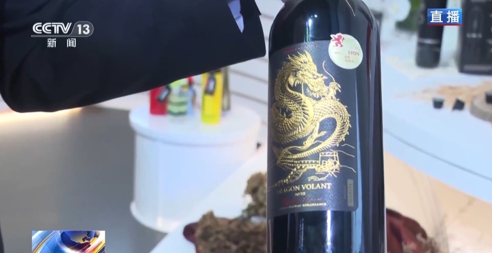 要特別介紹的是一款幹紅葡萄酒。這款葡萄酒,酒瓶裏麵,是來自法國波爾多一家葡萄酒莊園陳釀18個(ge) 月的美酒;而酒瓶外麵,也是一個(ge) 亮點,是由中國和法國設計師聯合設計的極具中國文化特色的金龍和長城圖案包裝,這不僅(jin) 是一瓶佳釀,更是中法文化交流、友好往來的見證。