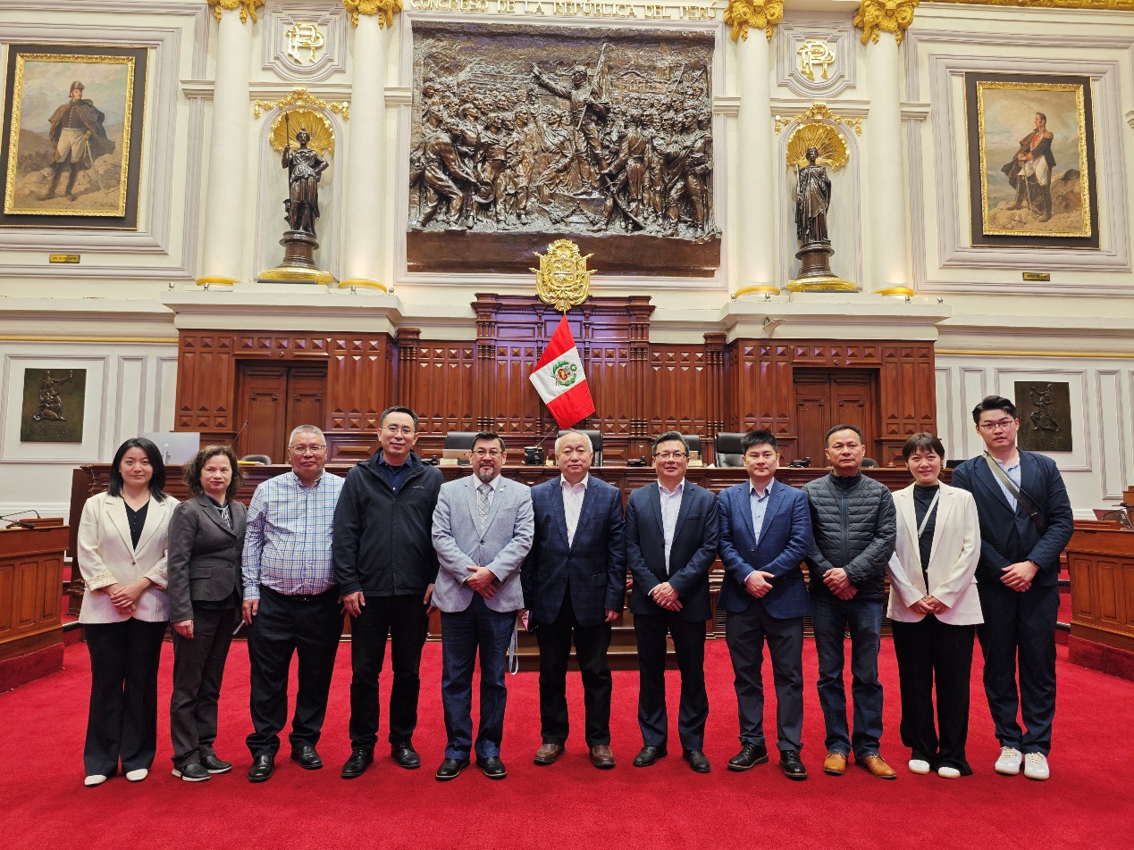 11月7日,中國新聞社采訪團一行在秘魯國會(hui) 采訪秘魯國會(hui) 議員兼秘中協會(hui) 友好聯盟主席路易斯·科爾德羅·楊·戴(左五)。