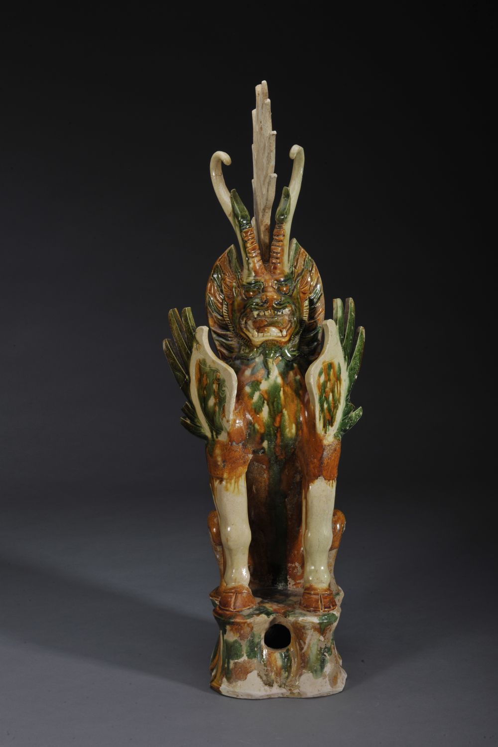 2019年出土於(yu) 河南省洛陽市洛龍區潘寨村的唐代三彩鎮墓獸(shou) 。(洛陽市考古研究院供圖)