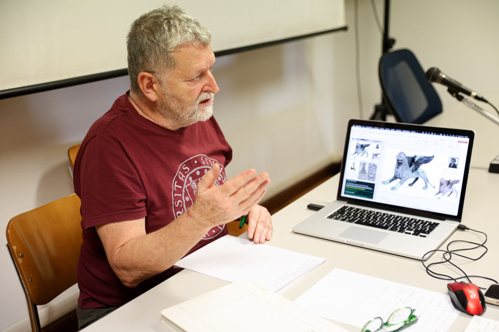 11月5日,意大利帕多瓦大學文化遺產(chan) 學院教授馬西莫·維達萊介紹“威尼斯之獅”研究相關(guan) 情況。新華社記者李京攝