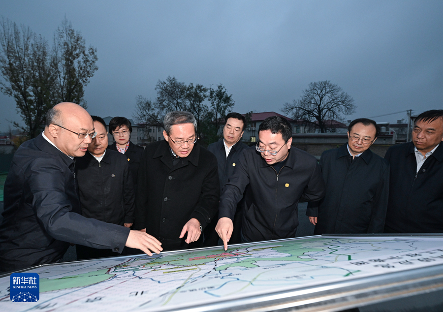 11月13日,中共中央政治局常委、國務院總理李強在河北調研。這是李強在涿州市小清河分洪區南圍堤建設工程現場,察看項目最新進展,聽取河北省災後重建重大水利工程等情況匯報,與(yu) 設計施工監理人員交流。新華社記者 饒愛民 攝