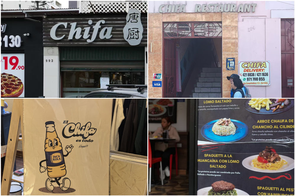 綿延不斷的人文交流,讓秘魯的飲食帶上了明顯的中餐印記:中餐館在秘魯被稱作“Chifa”(吃飯)(左上、右上)。炒飯(Chaufa)作為(wei) 常規食物,登上了大多數當地餐館的菜單(右下)。Chifa一詞,還被利馬的年輕畫家化用為(wei) 文化符號,與(yu) 本土飲料“印加可樂(le) ”一起融入到藝術創作中(左下)。