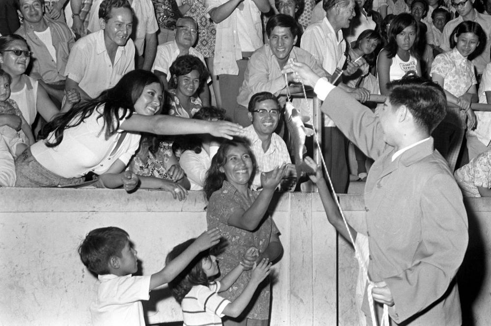 1973年2月,沈陽雜技團赴秘魯進行友好訪問演出。這是演員劉忠表演魔術《釣魚》,受到秘魯觀眾(zhong) 的熱烈歡迎。