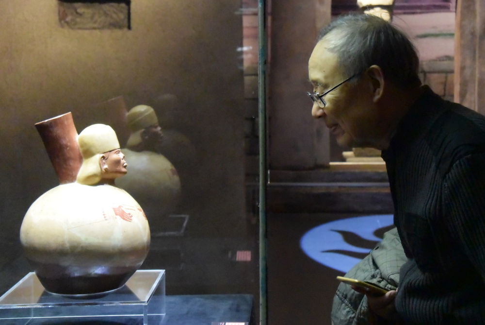 2020年1月17日,“安第斯文明特展——探尋神秘而又令人向往的印加帝國”在天津博物館開展。這是參觀者觀看來自秘魯的展品。