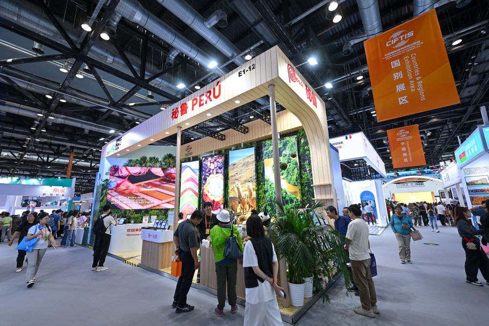 這是2024年9月15日在北京服貿會(hui) 國家會(hui) 議中心展區拍攝的秘魯展台。