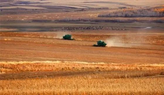 ▲ 大型收割機在進行收割。莫旗融媒體(ti) 供圖