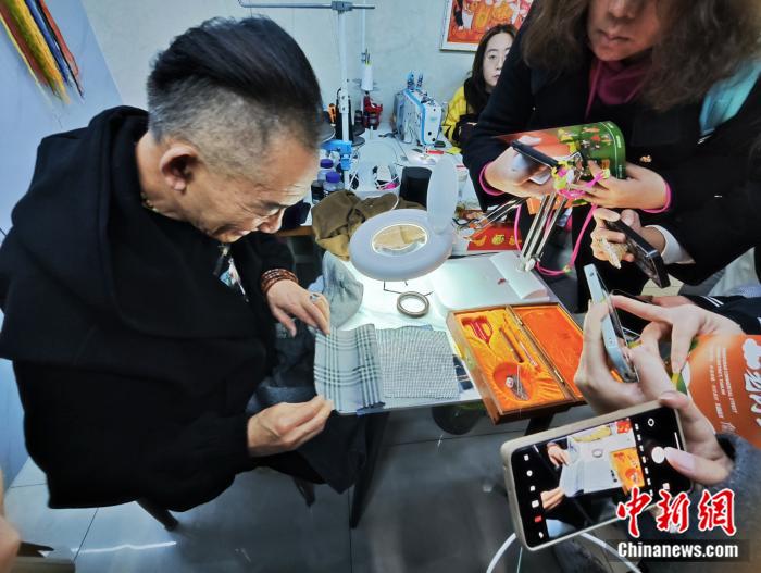 不足十平方米的店鋪中,老師傅徐春元桌前靜坐,目光如炬,手腕翻飛,細如牛毛的針在布料中來回穿梭。已年過花甲的他,從(cong) 事織補工作整整48年,是“傳(chuan) 統精工織補技藝”非遺項目持有人。那雙巧手,總能將破損的衣物修複得如初見般完美。