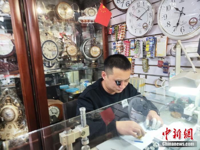 不遠處,聚亨鍾表店的王晴川正低頭專(zhuan) 注修表。這家修表店已經傳(chuan) 承了三代人,五年出徒,十年大成,他在此開店已二十三年。秒針的滴答作響中,時間被賦予了新的意義(yi) 和價(jia) 值。
