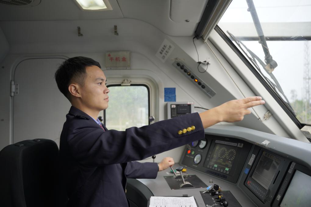11月15日,李峰正在駕駛中歐班列。新華社發