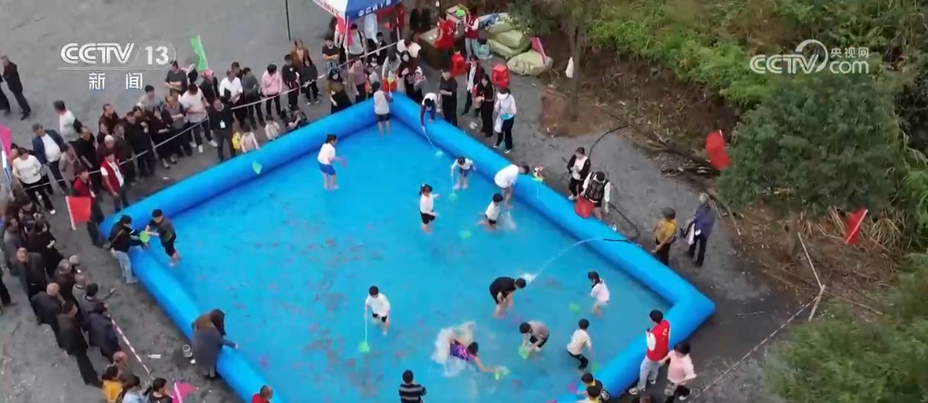 在捕魚現場,當地還設立了捕魚體(ti) 驗區,大人們(men) 協力拉緊繩索收攏大網,體(ti) 驗豐(feng) 收的喜悅;小朋友們(men) 也擼起袖子,挽起褲腿用網撈魚,沉浸式體(ti) 驗捕魚的樂(le) 趣。