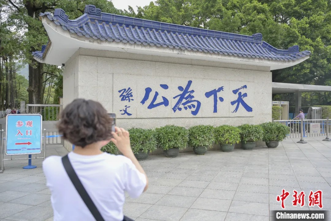 2024年3月30日,孫中山故居紀念館外正門處的“天下為(wei) 公”石碑吸引遊客。中新社記者 陳驥旻 攝