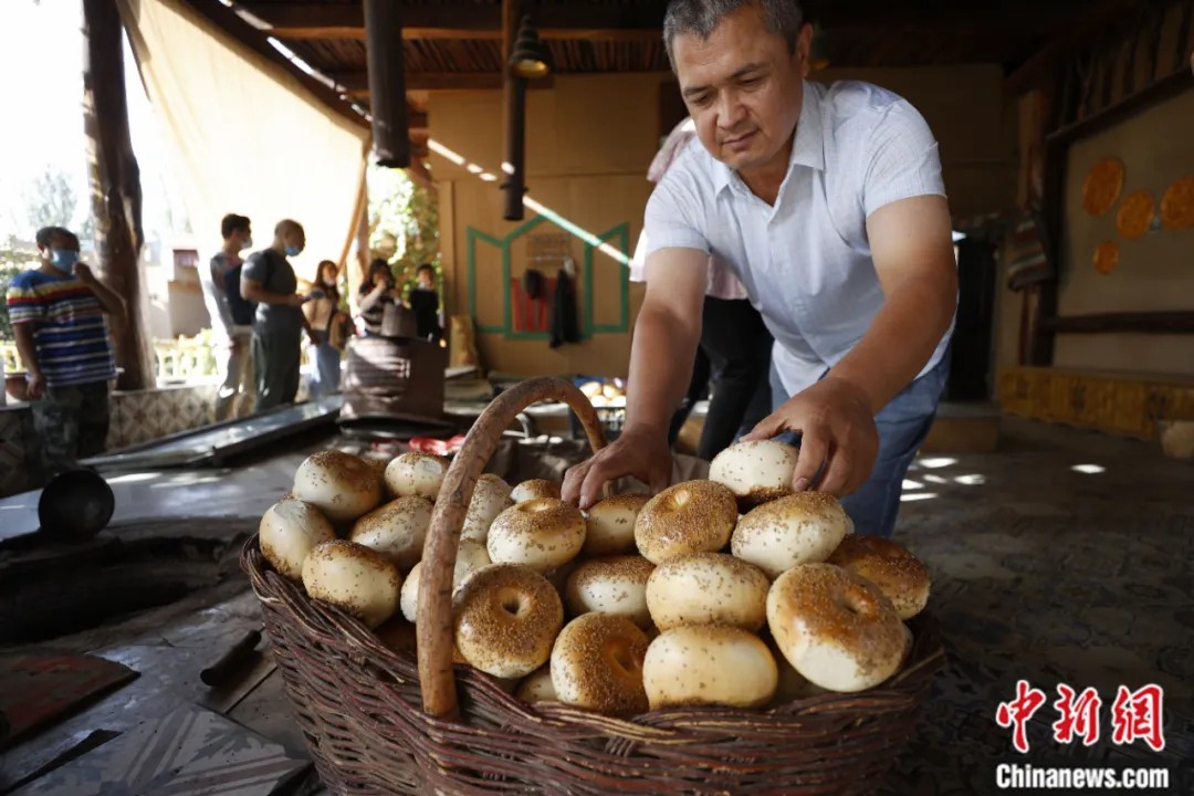 2021年9月25日,新疆維吾爾自治區克孜勒蘇柯爾克孜自治州阿圖什市阿孜汗村饢合作社。近年來,新疆大力發展饢產(chan) 業(ye) ,並逐漸成為(wei) 富民增收的“名片產(chan) 業(ye) ”。中新社記者 富田 攝