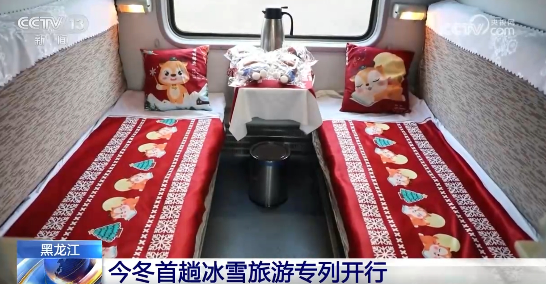 為(wei) 了滿足各地遊客的出行需求,沿途車站開辟了專(zhuan) 用候車區域,安排專(zhuan) 人引導出行,提高進出站效率。同時車廂臥具、抱枕裝飾了冰雪、民俗文化的主題元素,專(zhuan) 列上還安排了列車管家,配備應急藥品。行李還可寄存在車上,遊客遊玩更輕鬆。