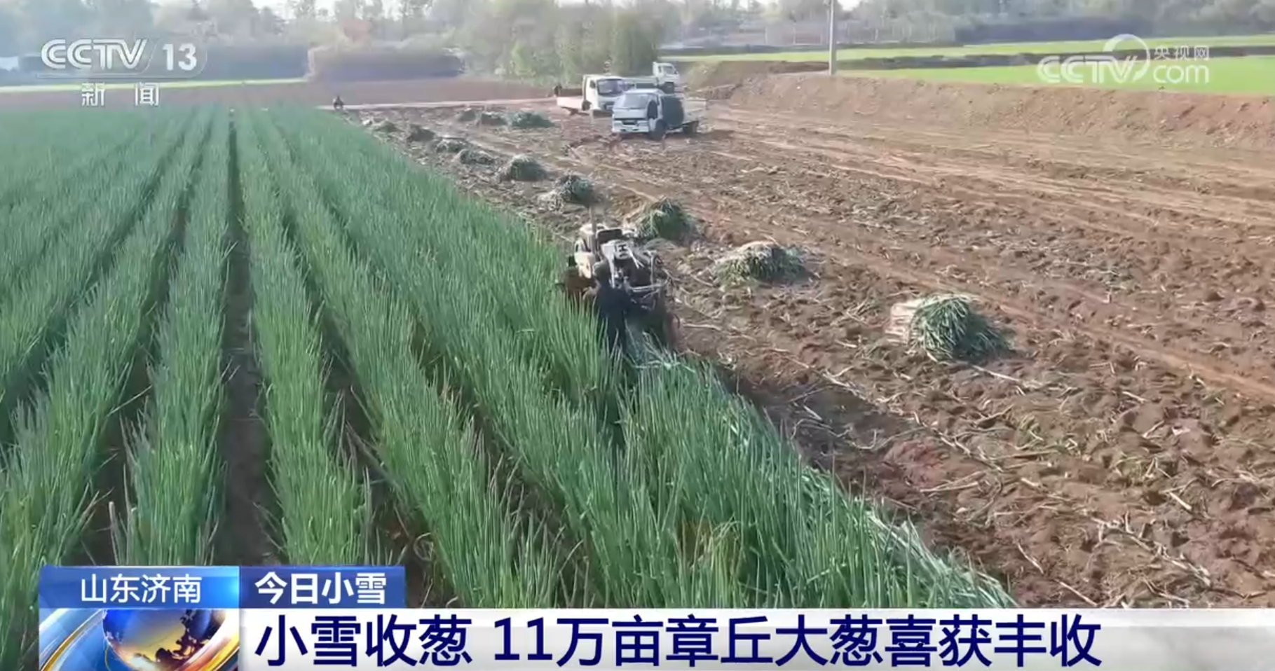 山東(dong) 濟南:小雪收蔥 11萬(wan) 畝(mu) 章丘大蔥喜獲豐(feng) 收